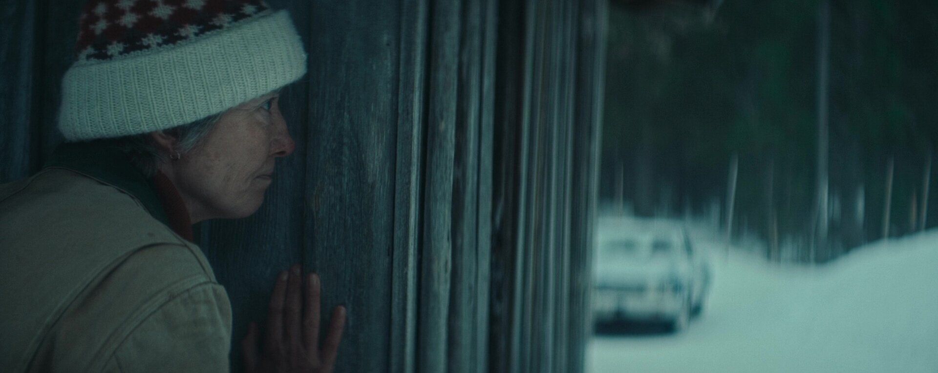 Пожилая вдова Барб живёт в удалённом домике в лесах на севере Миннесоты. Однажды зимой она отправляется порыбачить на озере Хилда, где когда-то прошло её первое свидание с будущим мужем. Заблудившись из-за метели, женщина случайно находит дом и незнакомца, который рубит дрова рядом с ним. Вдова замечает пистолет на приборной панели автомобиля и кровавый след около дома, но мужчина отвечает, что след остался от оленя, и подсказывает дорогу до озера. Добравшись до места и приготовив снасти, она внезапно слышит выстрелы. Спрятавшись за своей машиной, Барб видит, как тот самый незнакомец с оружием преследует девушку со связанными за спиной руками. Вдали от города и без связи вдова решает самостоятельно спасти девушку.